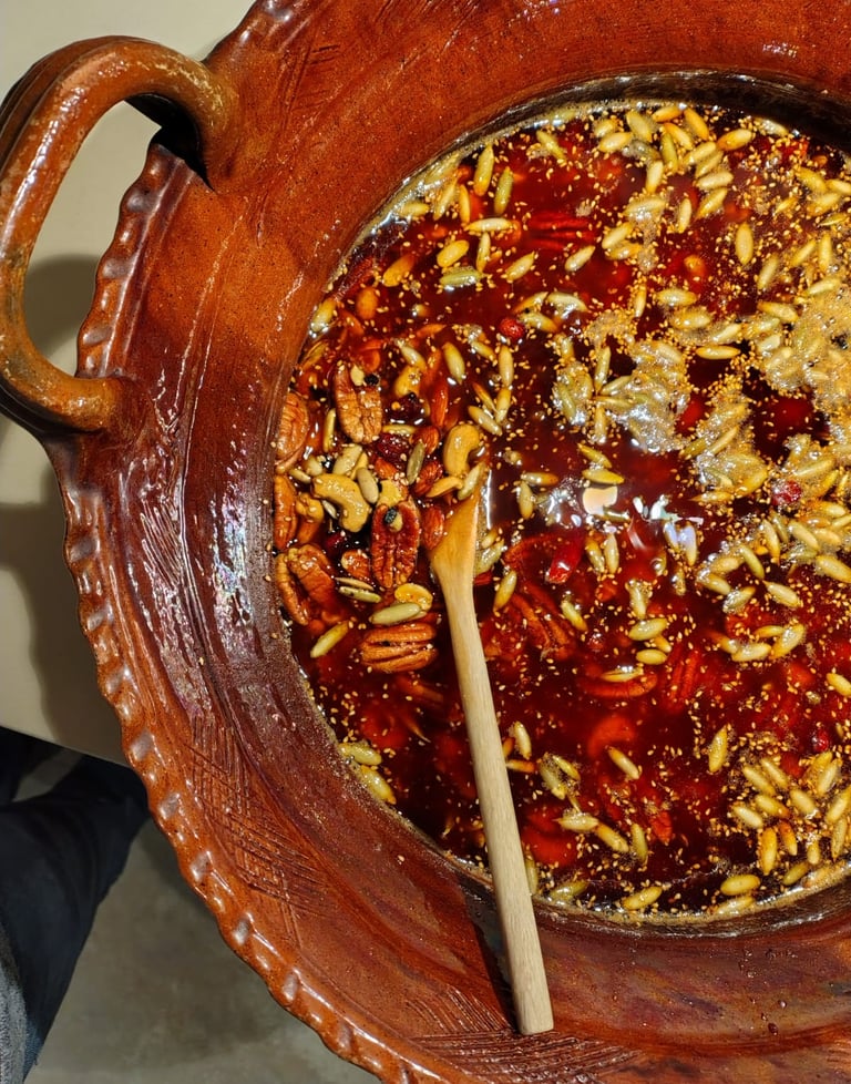 Salsas y aderezos artesanales elaborados con chiles, nueces, pepitas y almendras, pensados para elevar cada platillo.